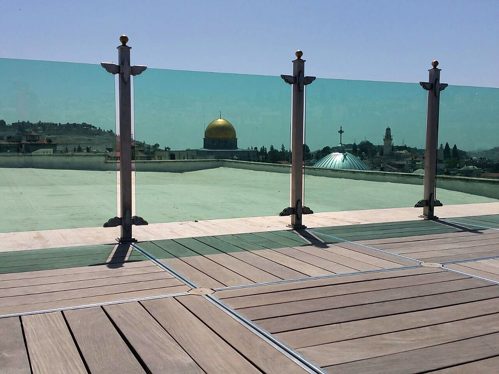 Production and installation of a walking surface on the roof of the building including designed products. Stairs, railings, pergolas, etc.